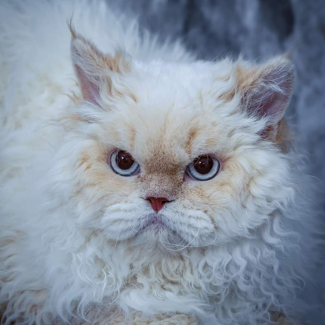 Selkirk Rex Cream Point. Lafayette รจ figlio di Felicia e vive da Daniela e Alessandro che lo amano come un figlio assieme alla "fidanzata" Givenchy e agli altri animali di casa. Non ama particolarmente le expo nonostante sia di una bellezza straordinaria con morbidi ricci e occhi azzurri, ma da lui ci aspettiamo presto una bella nidiata di cuccioli che mandino avanti questa eccellente linea di sangue.